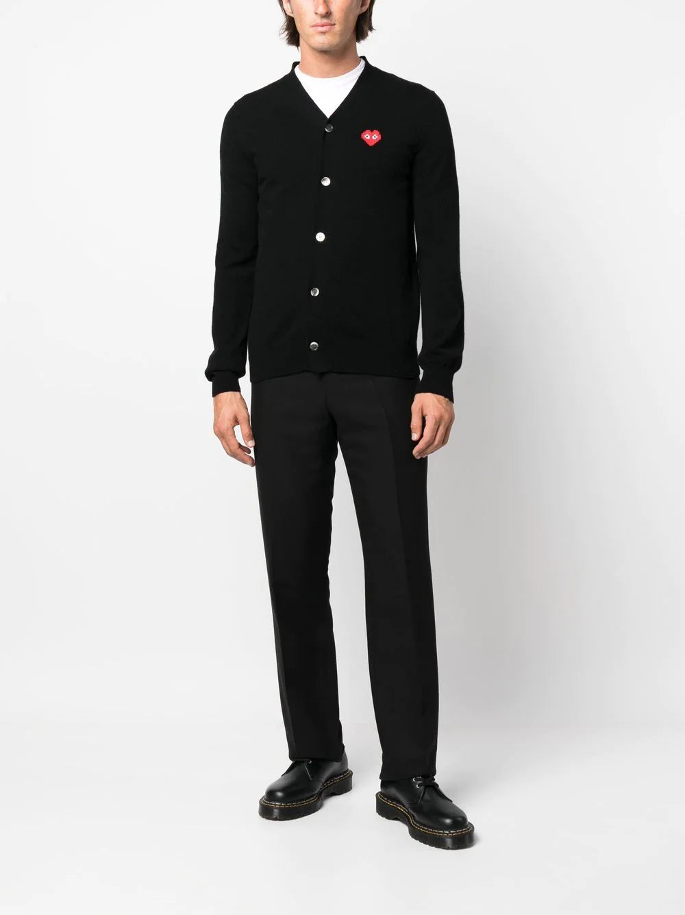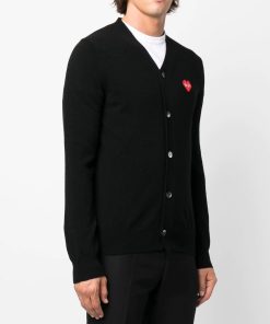 Mens Black Cardigan in Pixelated Heart