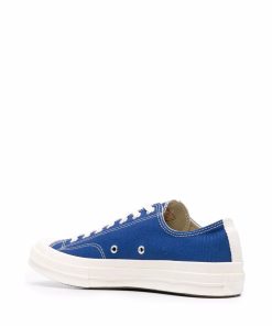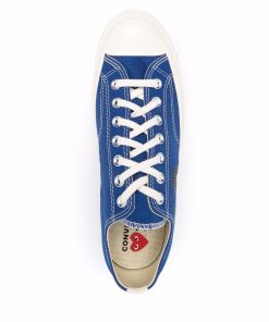 Low Blue Cotton Converse ‘Chuck Taylor’ Sneakers from Comme Des Garçons Play. Featuring White Rubber Sole, a Contrasting Toe Cap, a Heart Print on the Side and a Lace-Up Front Fastening. We Recommend to Purchase One Size Down.