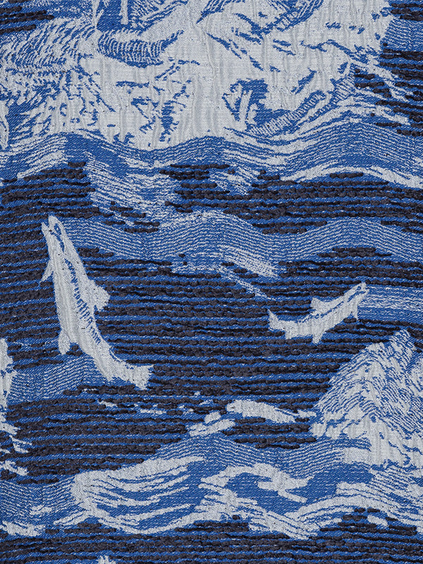 Signature fabric: This fabric is made in France by Dutel Création, specialist jacquard weavers dating back to 1937. It is specially developed with a Henrik Vibskov artwork, showcasing fishermen catching fish in a mountain creek.