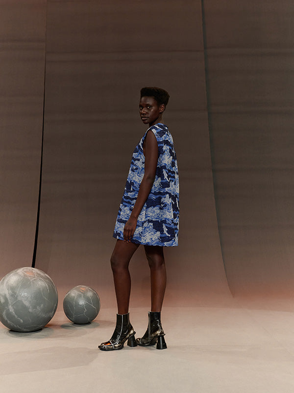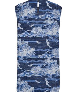 Dart Sleeveless Dress in Fishes Blue