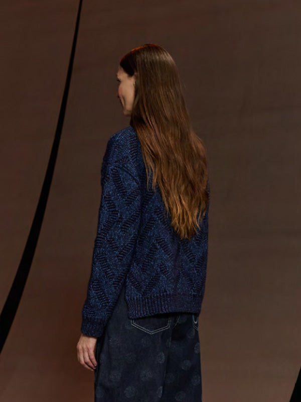 Flat Knitted Sweater in Flat Navy